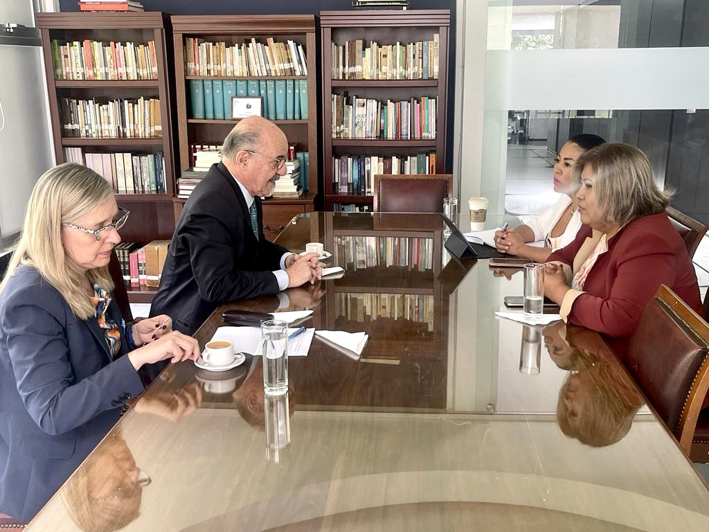 Oaxaca de Juárez, Oax. 24 de mayo de 2023.- La titular de la Secretaría de Turismo del Estado (Sectur Oaxaca) Saymi Pineda Velasco se reunió este miércoles con el embajador de la República de Argentina en México, Carlos Alfonso Tomada y el consejero cónsul de Canadá, Jonathan Boisseau.
