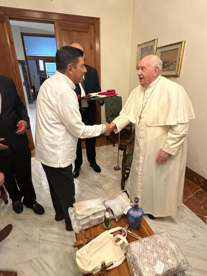 Se reúnen Gobernador Salomón Jara y Papa Francisco, dialogan sobre la transformación en Oaxaca