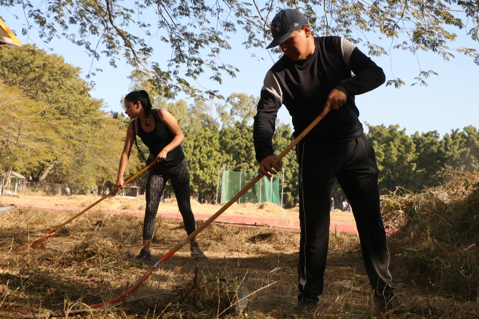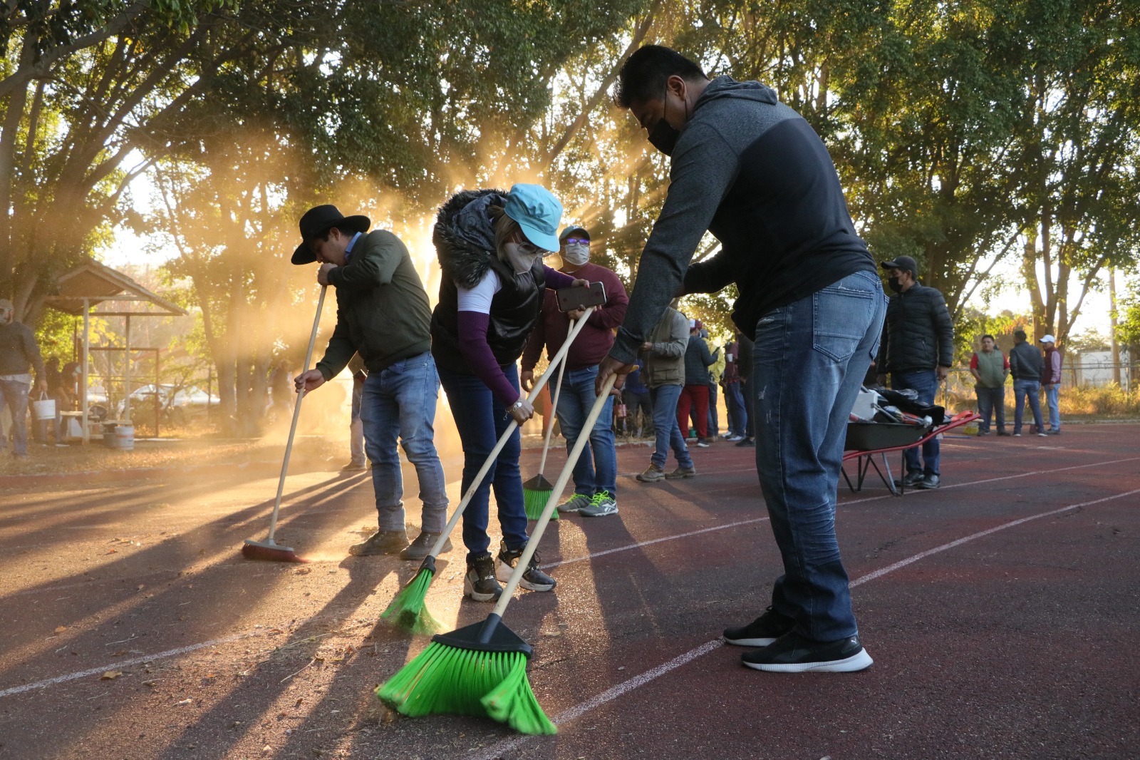 • Servidores públicos, ciudadanía y deportistas acudieron al llamado para colaborar en las labores de recuperación de la pista de tartán de El Tequio