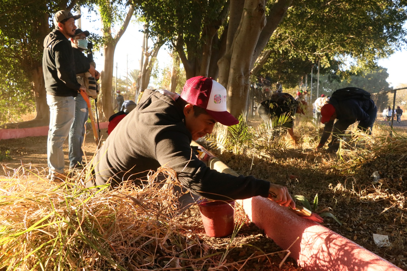 Santa Cruz Xoxocotlán, Oax., 30 de enero de 2023.- El Instituto del Deporte de Oaxaca (Indeporte), participó este domingo en el Tequio Bienestar, convocado por la Secretaría de Bienestar, con el objetivo de dar mantenimiento a las instalaciones de la Unidad Deportiva de El Tequio.