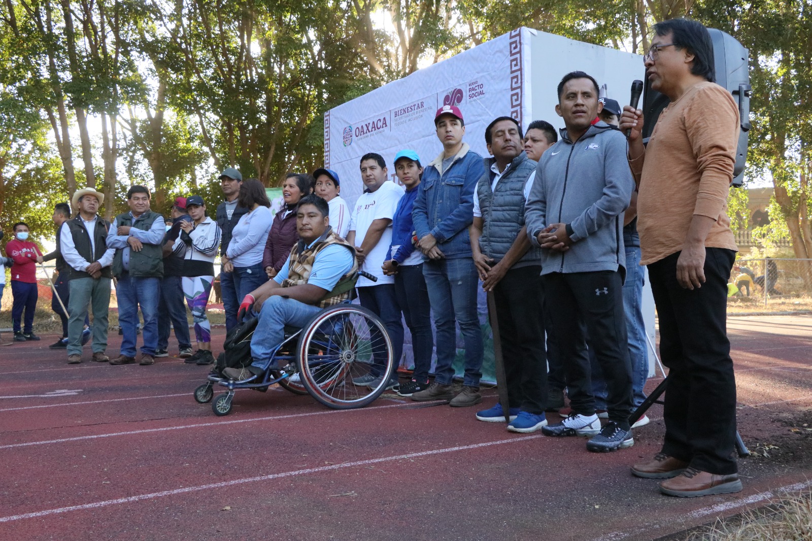 El director del organismo, Arturo de Jesús Chávez Ramírez, asistió y colaboró en el retiro de malezas del perímetro de la pista, donde hizo énfasis de la importancia del rescate de los espacios públicos deportivos para asegurar el derecho a la cultura física, al tiempo de destacar que con estas acciones el gobierno de Salomón Jara Cruz impulsa el nuevo pacto social para la convivencia pacífica y segura de las y los oaxaqueños.