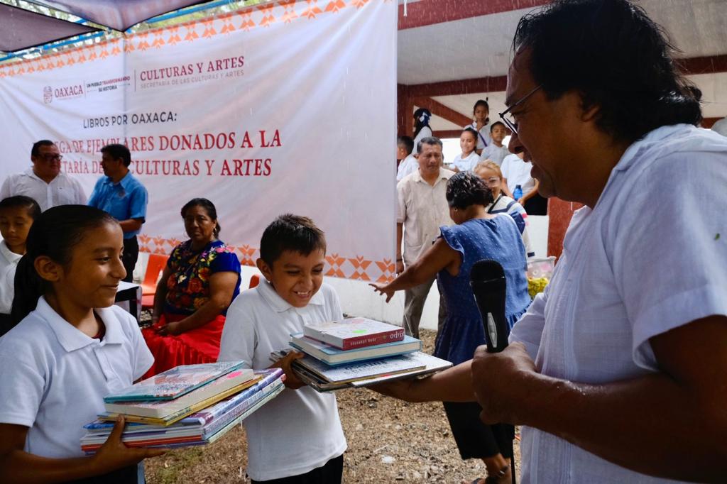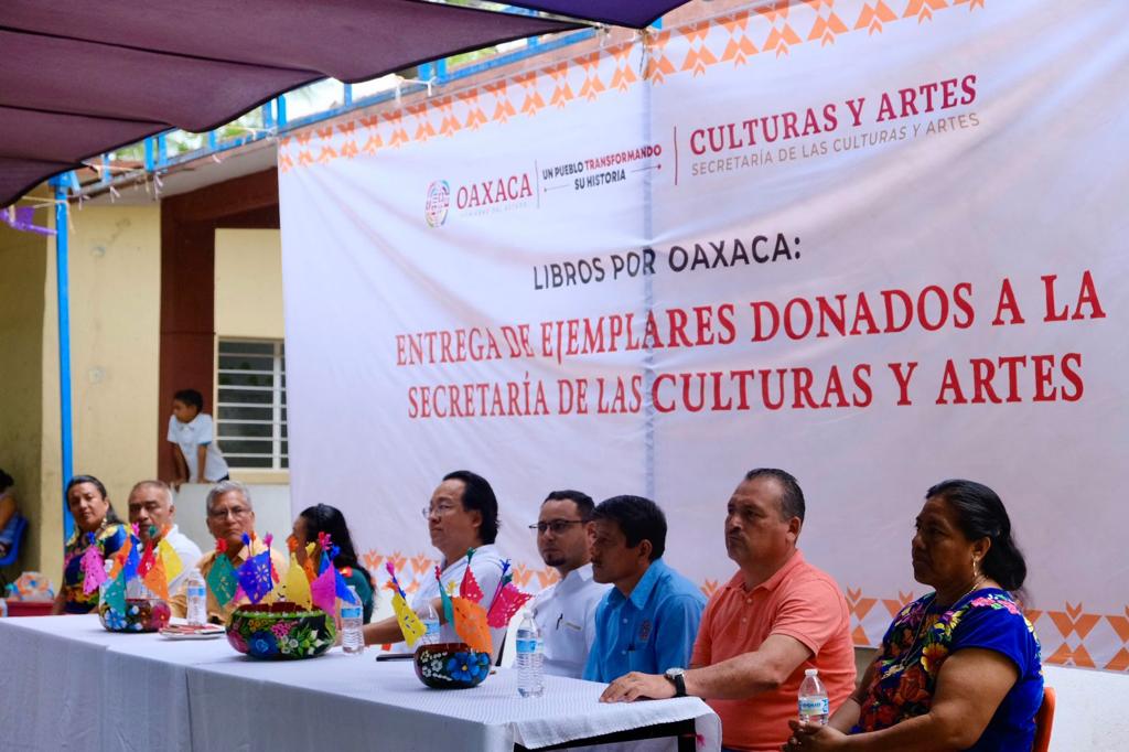 Al encabezar el evento, el titular de la Secretaría de las Culturas y Artes Víctor Cata expresó que la donación de libros forma parte del programa Libros por Oaxaca, que se realizó en el marco de las fiestas de Julio, Mes de la Guelaguetza.