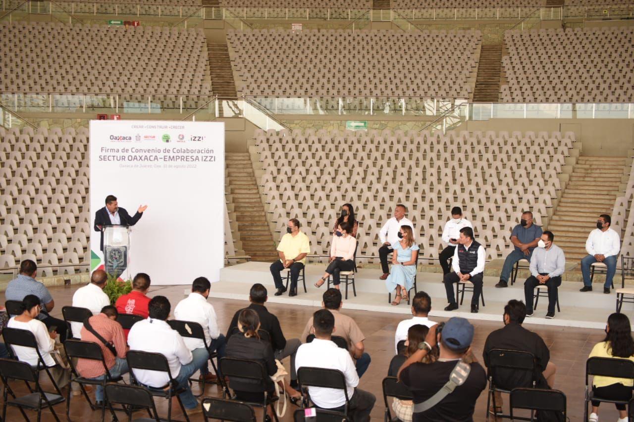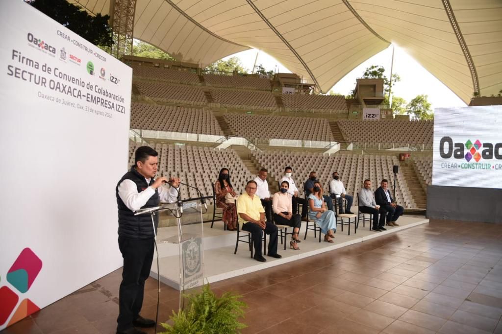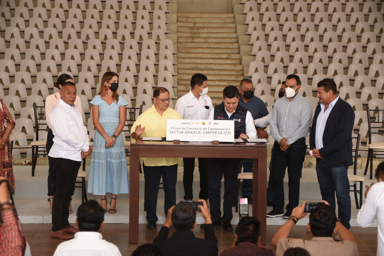 Oaxaca de Juárez, Oax., 31 de agosto de 2022.- Con la finalidad de fortalecer la plataforma de servicios turísticos, la Secretaría de Turismo del Gobierno del Estado de Oaxaca (Sectur Oaxaca) llevó a cabo una firma de convenio con la empresa IZZI atestiguado por las autoridades municipales de los Valles Centrales y asociaciones empresariales para brindar internet inalámbrico de manera gratuita.