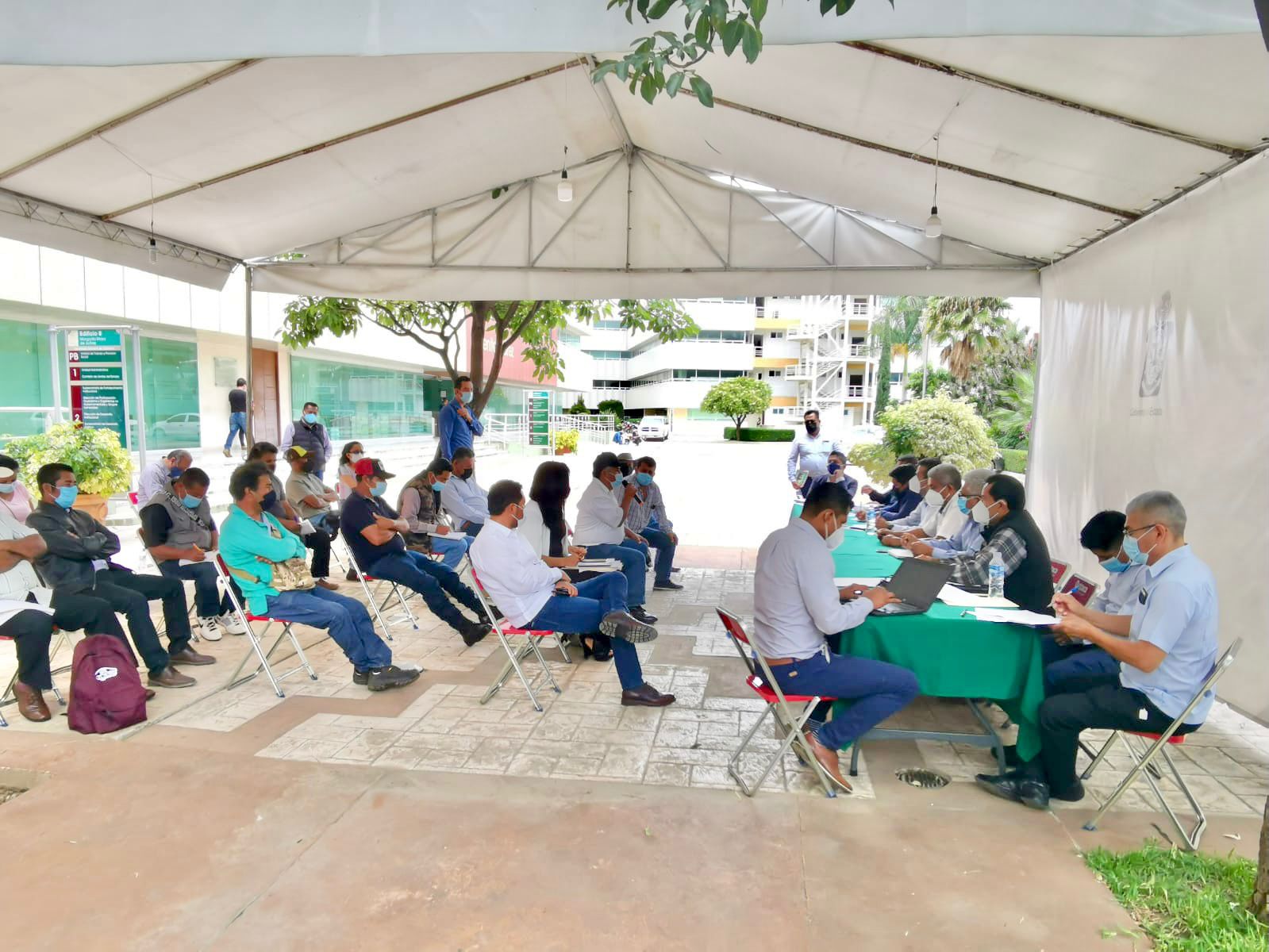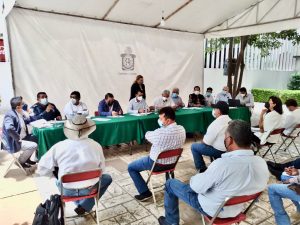 Tlalixtac de Cabrera, Oax. 12 de julio del 2021., La Secretaría General de Gobierno (Segego), a través de la Junta de Conciliación Agraria en coordinación con el representante de la Secretaría de Gobernación en Oaxaca (Segob), José Carlos Fuentes Ordaz; el responsable de Acciones de Derechos Humanos del Instituto Nacional de los Pueblos Indígenas (INPI), Juan de Dios Ortiz Concha, junto con la Defensoría de los Derechos Humanos del Pueblo de Oaxaca (DDHPO), personal de la Procuraduría Agraria, Fiscalía General del Estado y de la Secretaría de Seguridad Pública, sostuvieron una mesa de diálogo con las autoridades municipales y agrarias de Cuilápam de Guerrero.