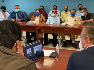 Tlalixtac de Cabrera, Oax. 13 de julio del 2021. La Secretaría General de Gobierno (Segego), junto con la Comisión Estatal del Agua (CEA), la Junta de Conciliación Agraria y la Comisión Nacional del Agua Cuenca Pacifico Sur (Conagua Oaxaca), sostuvieron una mesa de diálogo con las autoridades municipales y agrarias de Tamazulápam del Espíritu Santo, y San Pedro y San Pablo Ayutla.