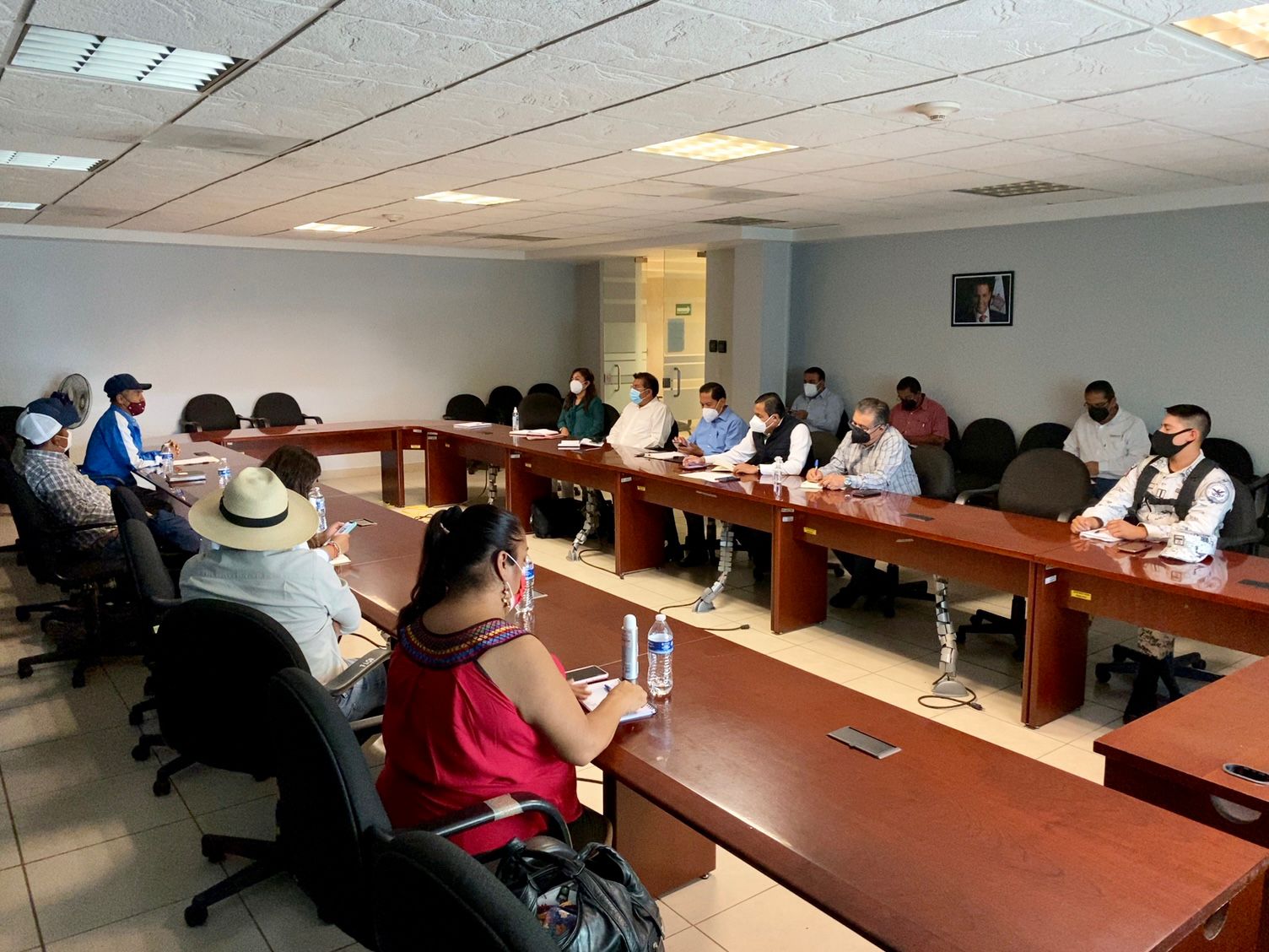 Tlalixtac de Cabrera, Oax. 19 de agosto de 2021. La Secretaría General de Gobierno (Segego), la delegación de la Secretaría de Gobernación Oaxaca (Segob) y la Coordinación General de Atención Regional (CGAR), instalaron junto con la Fiscalía General del Estado de Oaxaca (FGEO), Guardia Nacional y la Secretaría de Seguridad Pública (SSP), dos mesas de diálogo con autoridades municipales, auxiliares, agrarias y comisiones ciudadanas de Santa Cruz Mitlatongo y Santiago Mitlatongo.