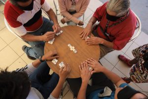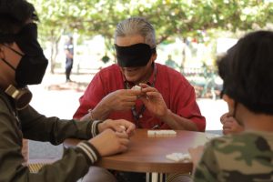Durante esta actividad, mujeres y hombres de todas las edades se vendaron los ojos para jugar dominó al lado de personas con ceguera. A lo largo de las partidas, el grupo participante usó el tacto para identificar las piezas, experimentando la sensación de jugar a ciegas al tiempo que se generaba una cultura de respeto, tolerancia y solidaridad hacia las personas con discapacidad visual.