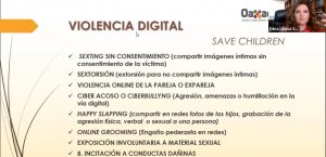 Sexting sin consentimiento, Ciberacoso, happy slapping (compartir en redes fotos de hijas e hijos, grabación de la agresión física verbal o sexual a una persona), online grooming (engaño pederasta en redes), exposición involuntaria de material sexual, incitación a conductas dañinas, sharenting (sobre exposición de infantes en internet) fueron algunos de los términos expuestos.