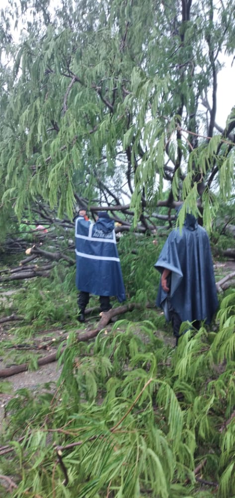 En Unión Hidalgo, elementos de la PABIC se encuentran apoyando a la población por la caída de por lo menos seis árboles, en esta zona donde también familias se han visto afectadas por anegación de agua en sus viviendas, lo mismo que en San Mateo del Mar, Salina Cruz y Juchitán de Zaragoza.