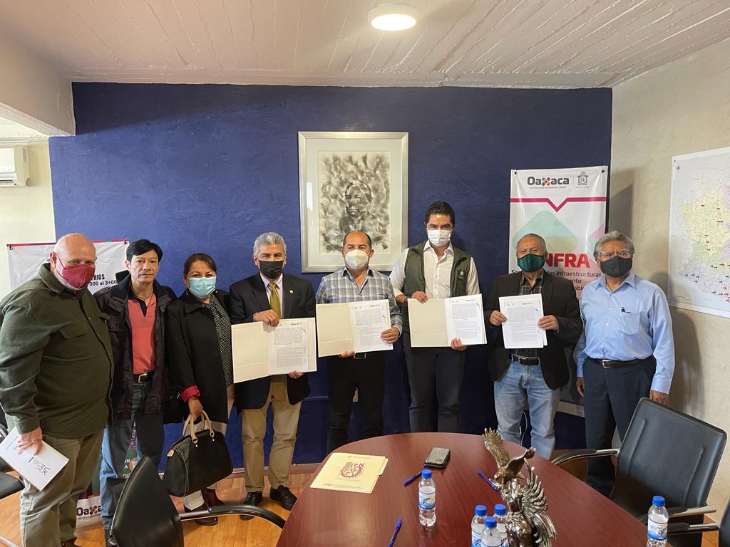 Oaxaca de Juárez, Oax. 4 de noviembre de 2021.- El titular de la Secretaría de las Infraestructuras y el Ordenamiento Territorial Sustentable (Sinfra), Javier Lazcano Vargas, firmó un convenio con el Centro de Vinculación y Desarrollo Regional, Unidad Oaxaca del Instituto Politécnico Nacional (CVDR-IPN Unidad Oaxaca); con el movimiento social ciudadano, Unidos por Oaxaca (UNO) y con la Federación Mexicana Ambientalista, Educación y Cultura, A.C. (FMA), para constituir el Consejo Consultivo en Materia Ambiental de cara a las obras y proyectos de infraestructura que se realizan en la entidad, con la finalidad de preservar el medio ambiente y prevenir posibles daños a la ecología.