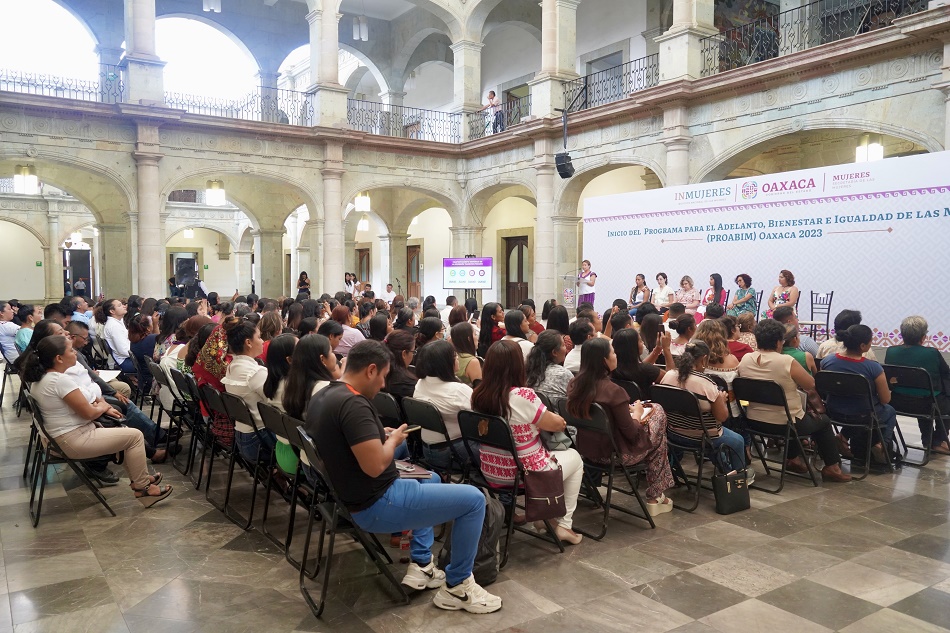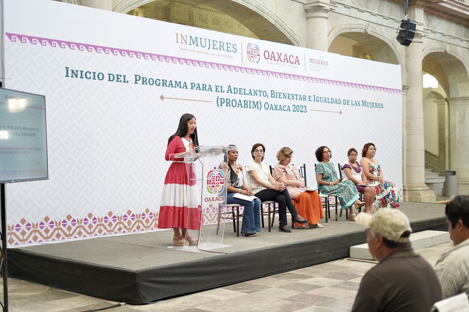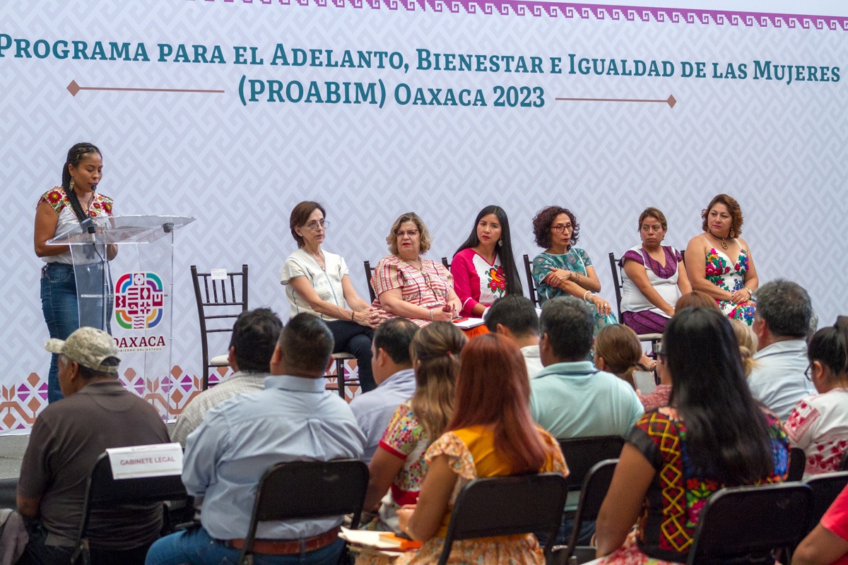 Oaxaca de Juárez, Oax. 17 de mayo de 2023.- La titular de la Secretaría de las Mujeres (SM) Elisa Zepeda Lagunas y la Presidenta del Instituto Nacional de las Mujeres (Inmujeres), dieron inicio al Programa para el Adelanto, Bienestar e Igualdad de las Mujeres (PROABIM) que tendrá recursos por 40 millones 580 mil pesos para atender 158 municipios de Oaxaca.