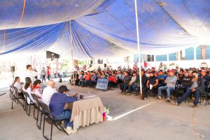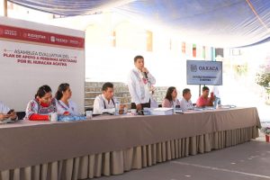 En San Francisco Ozolotepec, acompañado por el edil Guillermo Gallardo Figueroa, Jara Cruz encabezó la Asamblea Evaluativa para conocer las acciones realizadas con los 50 millones de pesos destinados a atender las afectaciones causadas por el huracán.