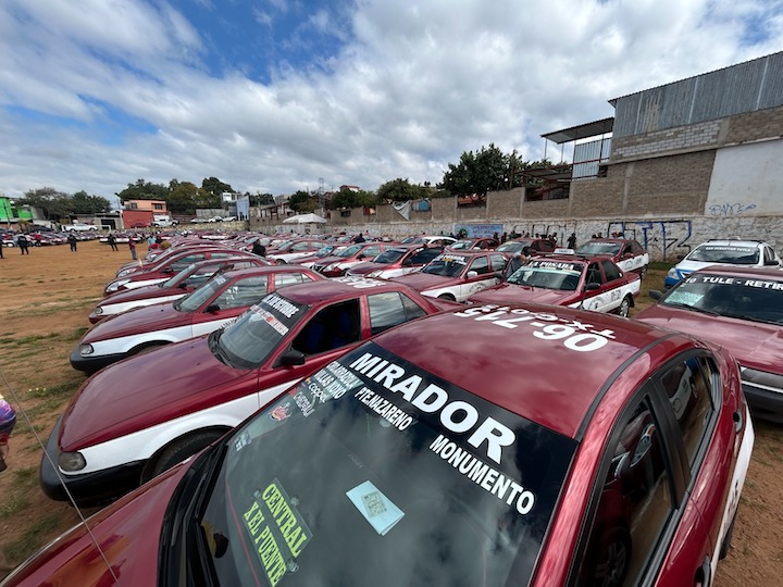 Oaxaca de Juárez, Oax., 21 de octubre de 2025. – Como parte del programa Transporte Seguro, 212 unidades de taxi fueron revisadas en un operativo conjunto implementado en la agencia de Pueblo Nuevo, de la ciudad de Oaxaca; por la Secretaría de Movilidad (Semovi) y la Fiscalía General del Estado (FGEO).