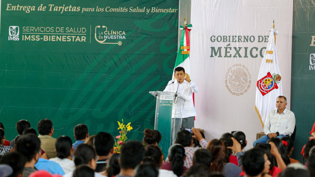 Miahuatlán de Porfirio Díaz, Oax. 7 de junio de 2024.- Al realizar la entrega de 119 tarjetas del programa federal La Clínica es Nuestra para los Comités de Salud de Miahuatlán de Porfirio Díaz y Sola de Vega, el Gobernador del Estado Salomón Jara Cruz aseguró que en esta etapa de transformación que se vive en la entidad, habrá medicamentos para todos los centros de salud de Oaxaca.