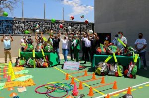 Con la directora general del Instituto de Cultura Física y Deporte de Oaxaca, Montserrat Heinze, la señora Ivette Morán de Murat entregó material deportivo a 42 entrenadores de 7 disciplinas de las ocho regiones. Además, recorrió las nuevas instalaciones del Deportivo “Hermanos Flores Magón”. Por instrucción del Gobernador Alejandro Murat Hinojosa, se impulsa la práctica de deportes en el estado.
