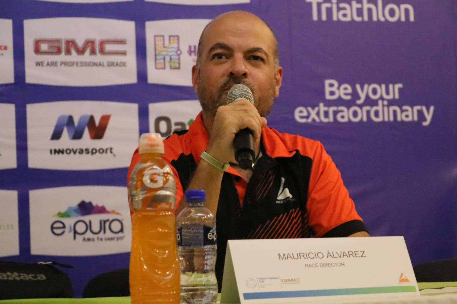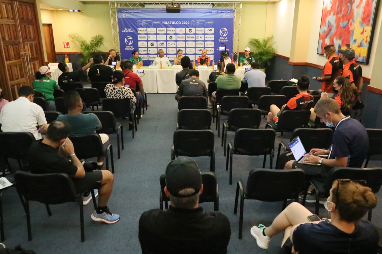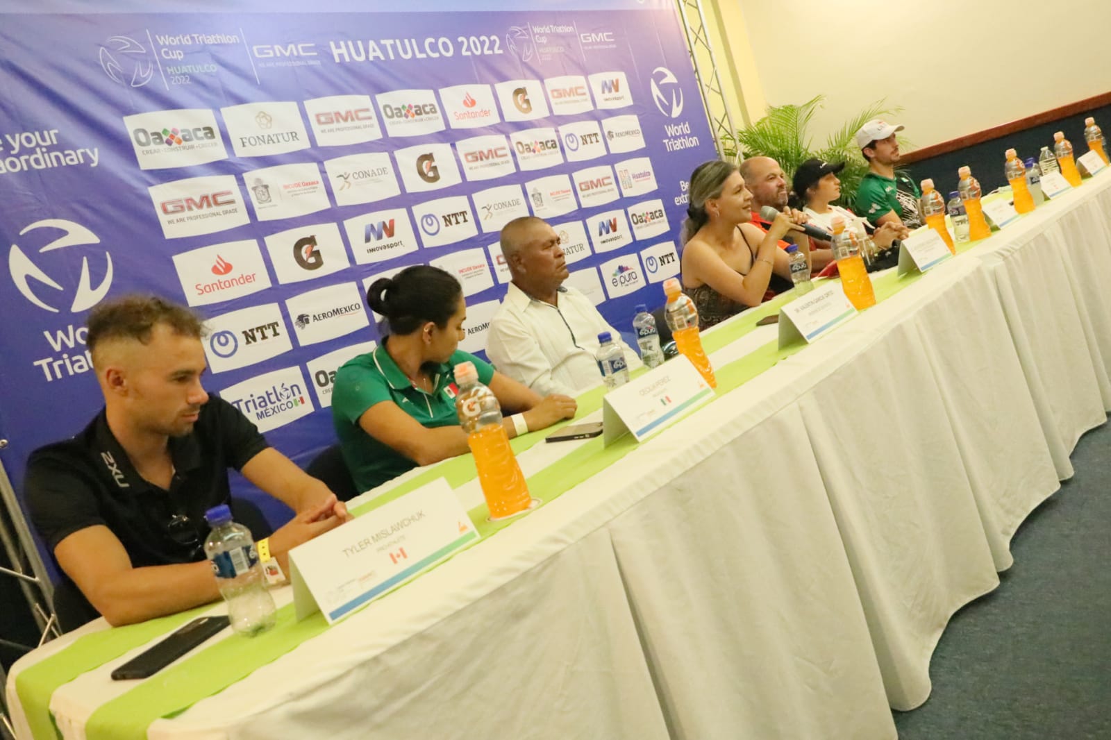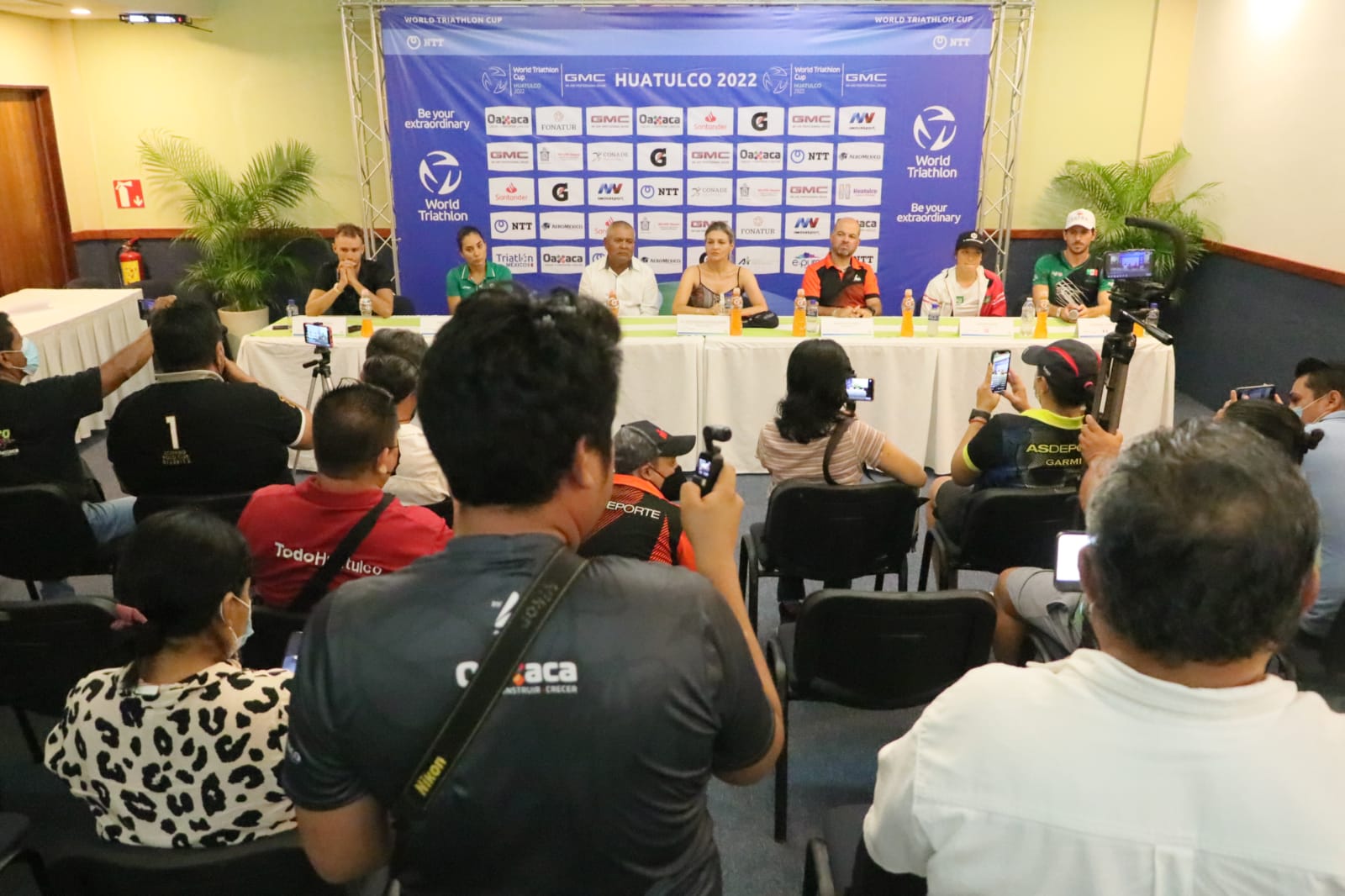 Oaxaca de Juárez, Oax. 17 de junio de 2022.- En conferencia de prensa la directora del Instituto de Cultura Física y Deporte de Oaxaca (Incude Oaxaca), Montserrat de los Ángeles Aragón Heinze, y el director del evento, Mauricio Álvarez dieron a conocer que atletas de 30 países lucharán por sumar puntos para la clasificación rumbo al triatlón de los Juegos Olímpicos Paris 2024, en la 13° Copa Mundial de World Triathlon que se realizará este sábado 18 y domingo 19 de junio en las majestuosas playas de Huatulco Oaxaca.