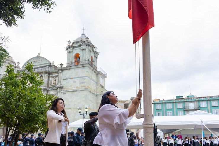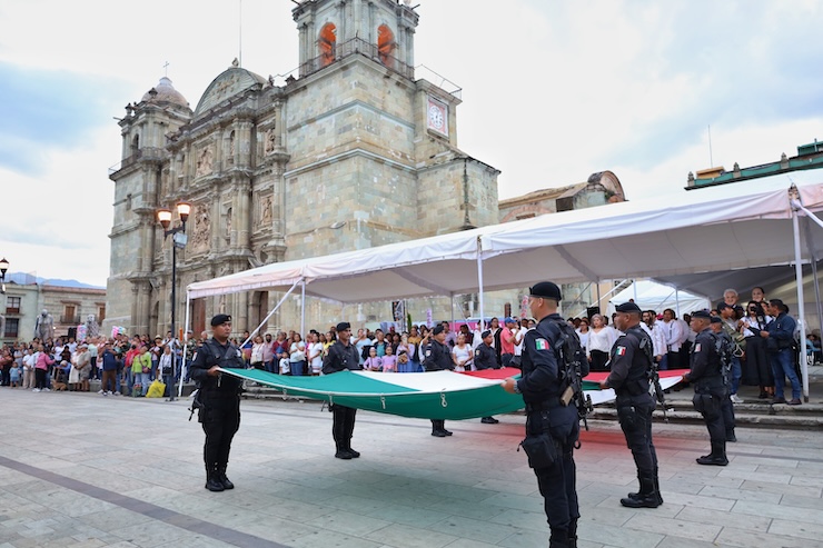 Esto, durante el arriamiento del Lábaro Patrio en la Alameda de León de la capital oaxaqueña y frente a funcionariado público de la Coordinación de Comunicación Social del Gobierno del Estado de Oaxaca y la Procuraduría de la Defensa para las Personas con Discapacidad adscrita al Sistema Estatal para el Desarrollo Integral de la Familia (DIF) Oaxaca, así como ciudadanía presente en este solemne acto.