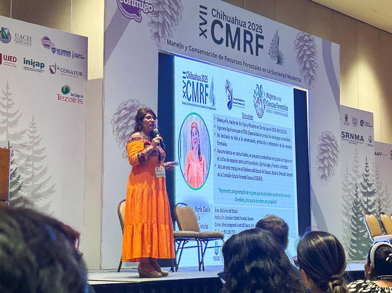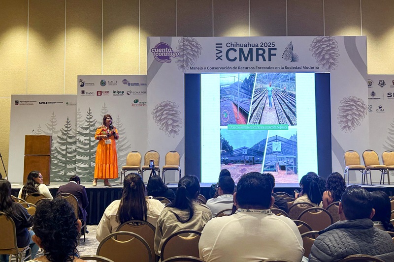 Chihuahua, Chih. 9 de octubre de 2025.– En el XVII Congreso Mexicano de Recursos Forestales, la directora general de la Comisión Estatal Forestal (Coesfo), Magdalena María Coello Castillo compartió las acciones impulsadas con enfoque humano, técnico y de justicia ambiental.