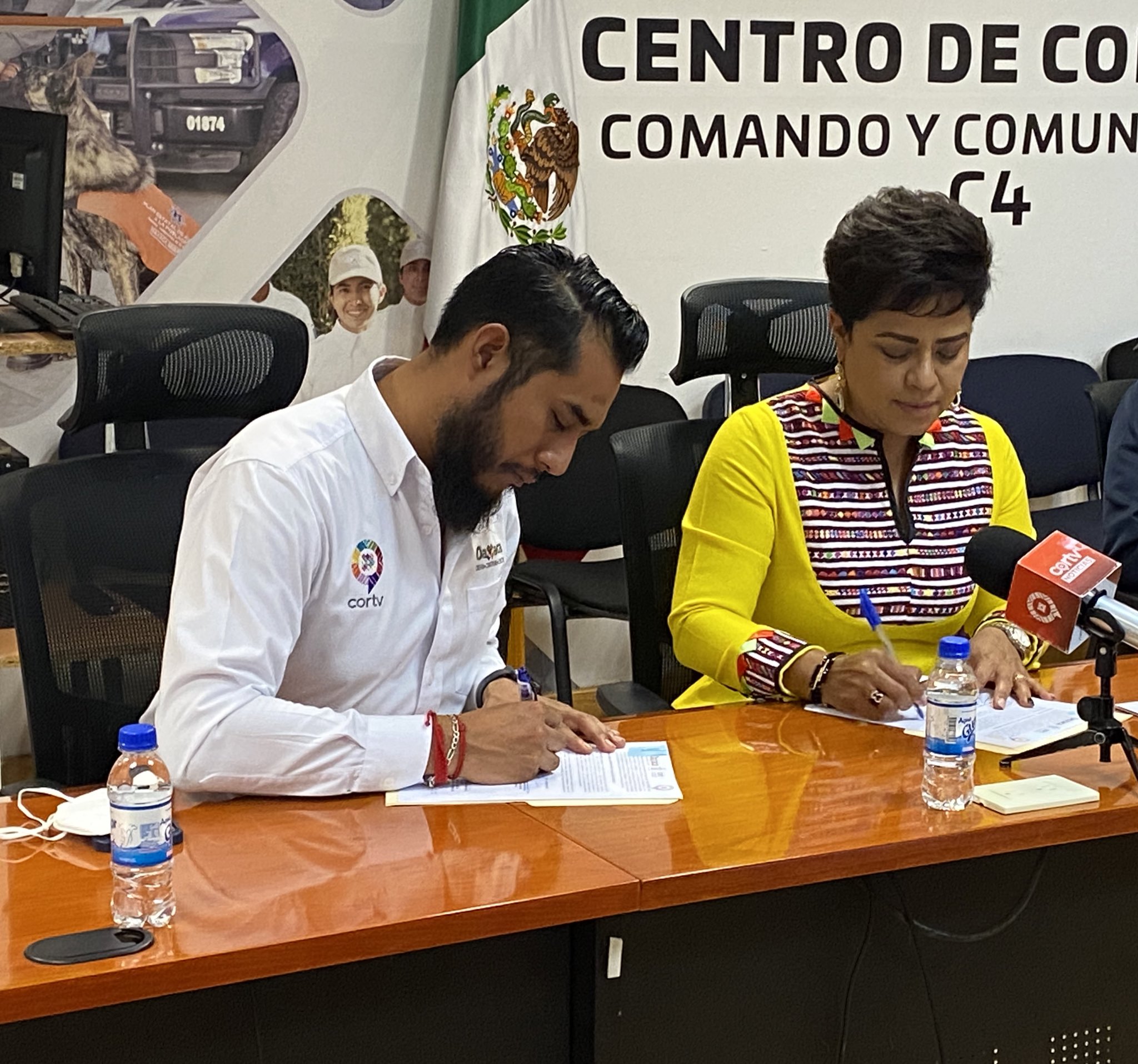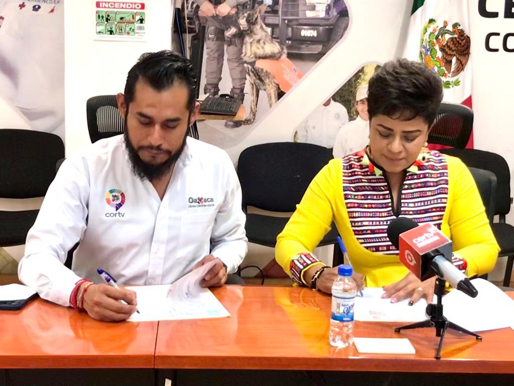 Oaxaca de Juárez, Oax. 28 de septiembre de 2022.- La Secretaría de Seguridad Pública de Oaxaca (SSPO) y la Corporación Oaxaqueña de Radio y Televisión (Cortv) firmaron un convenio de colaboración, para la transmisión de la serie “Canero”, con el objetivo de difundir las historias de vida de las Personas Privadas de Libertad (PPL´s) de los Centros Penitenciarios del Estado Oaxaca a través de la y su efectiva reinserción social.