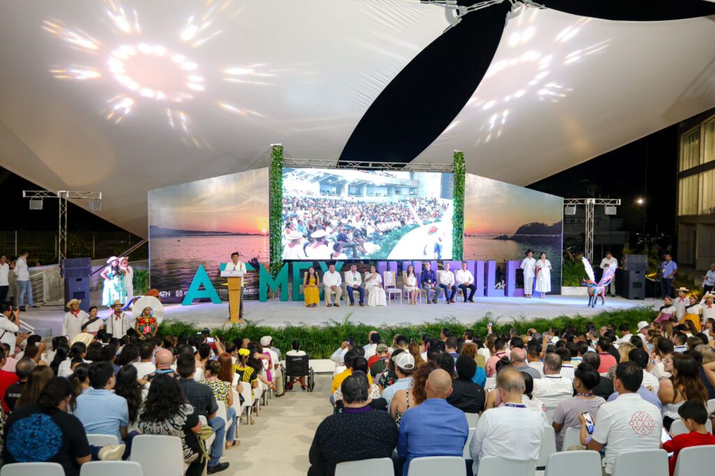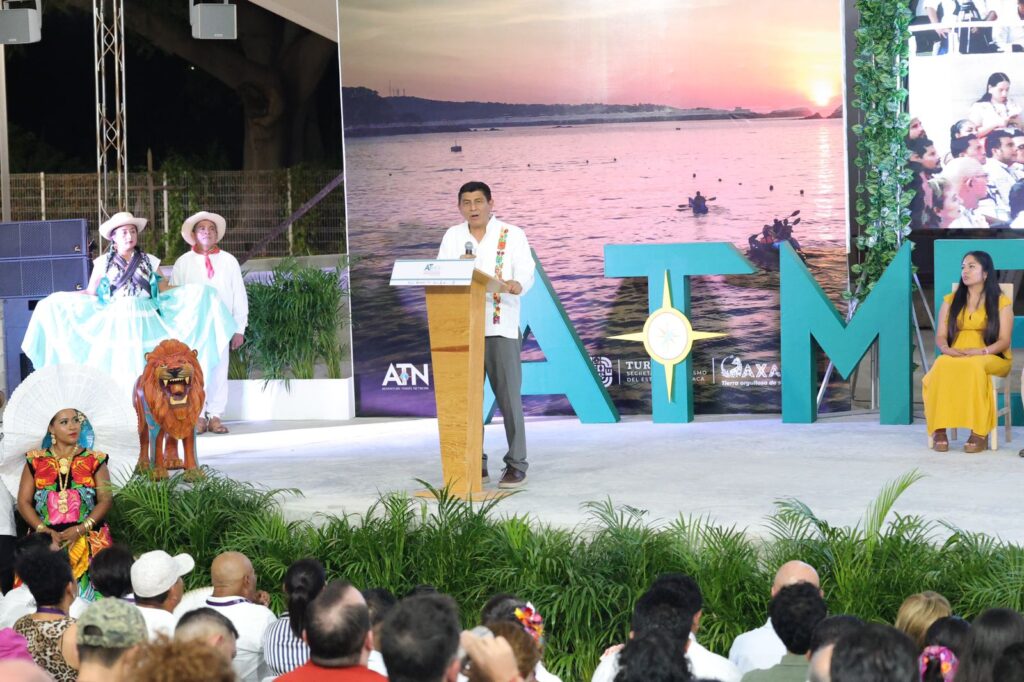 Santa María Huatulco, Oax. 19 de octubre de 2023.- El Gobernador de Oaxaca Salomón Jara Cruz fue testigo del inicio de la onceava edición de ATMEX Adventure Travel Network que se realiza en este destino turístico de la costa oaxaqueña, un evento que congrega a profesionales de ecoturismo, quienes se reúnen aquí para intercambiar experiencias en este rubro, además de fortalecer lazos y concretar esfuerzos en beneficio del sector.