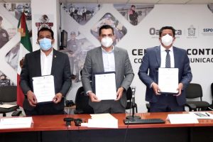 Oaxaca de Juárez, Oax. 9 de marzo de 2021.- La Secretaría de Seguridad Pública de Oaxaca (SSPO) y la Universidad Autónoma “Benito Juárez” de Oaxaca (UABJO), llevaron a cabo la firma de dos convenios de colaboración en los que fungiera como testigo de honor, la Defensoría de los Derechos Humanos del Pueblo de Oaxaca (DDHPO).
