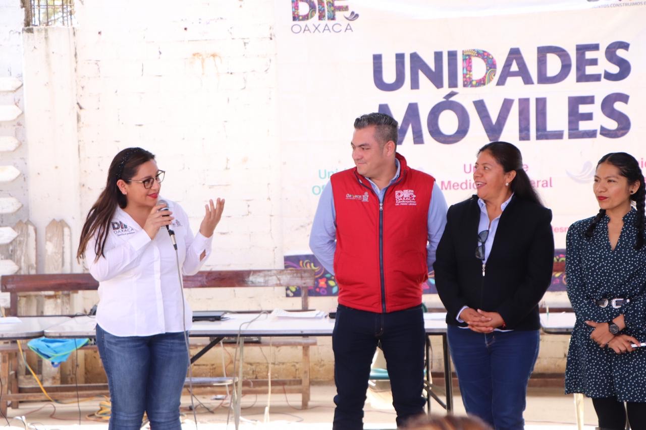 «Acercamos las unidades móviles de salud, para beneficiar a las y los habitantes de esta agencia municipal y colonias aledañas, cumpliendo con uno de los compromisos del señor Gobernador, Alejandro Murat Hinojosa y su esposa, la presidenta honoraria, Ivette Morán de Murat» señaló Monserrat González.