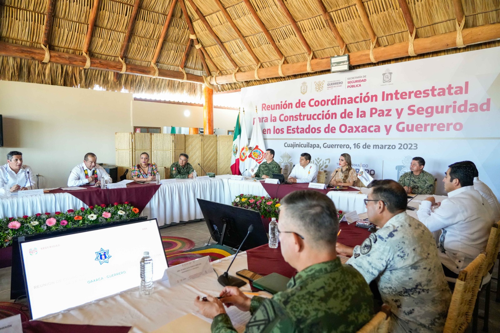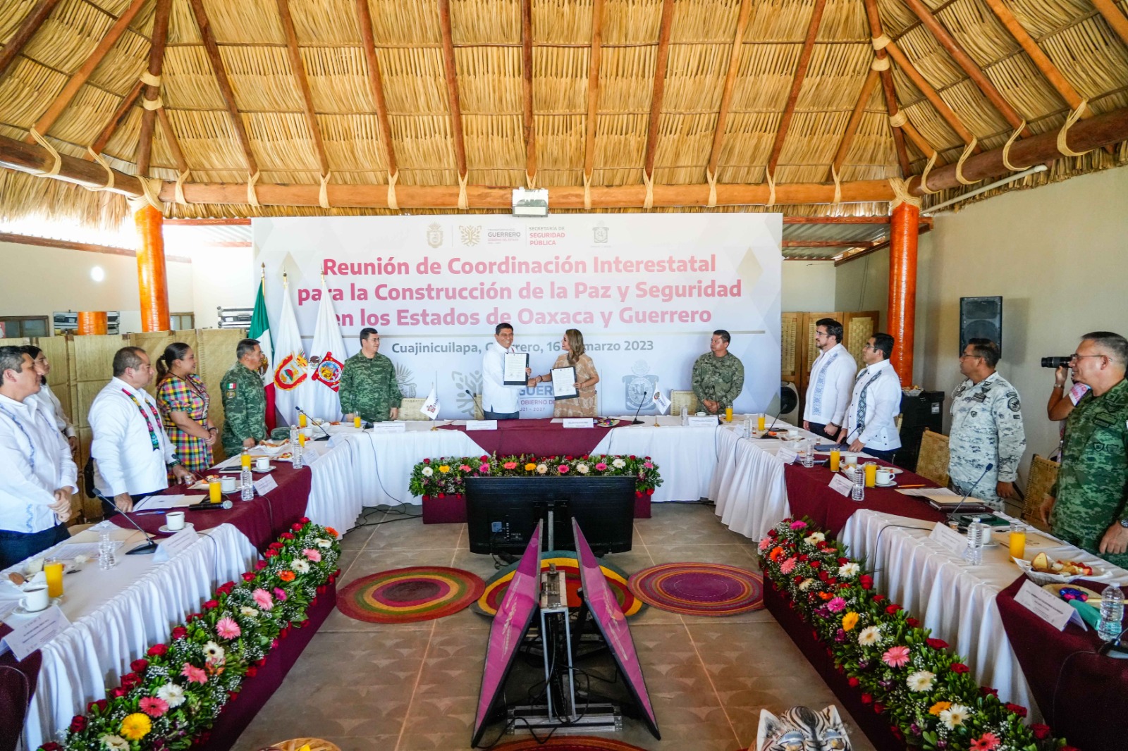 En el encuentro, realizado en el marco de la Reunión para la Coordinación Interestatal para la Construcción de la Paz y Seguridad de los Estados de Guerrero y Oaxaca, el Gobernador Salomón Jara Cruz expresó que este Convenio forma parte del compromiso indeclinable que ambas administraciones tienen con la Estrategia Nacional de Seguridad que impulsa el Presidente de México, Andrés Manuel López Obrador, y es parte de los esfuerzos encaminados a construir un Oaxaca y Sur-sureste con seguridad y bienestar.