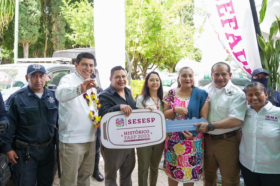En esta comunidad, el Gobernador Salomón Jara hizo entrega de una patrulla para aumentar la seguridad de la comunidad.