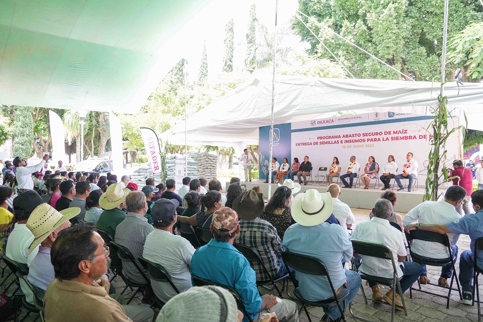 “La idea es que juntos produzcamos todo el maíz que se consume en Oaxaca, estamos haciendo que los tiempos agrícolas coincidan con los gubernamentales y hoy estamos en muy buen tiempo para atender a nuestro campo”.