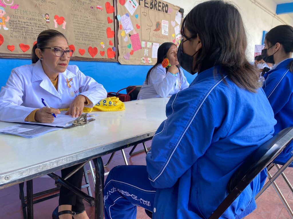 En este sentido, este día se realizó la inauguración de la Primera Feria Interinstitucional Bienestar Escolar Actúa hoy, con la aplicación de cédulas de detección oportuna a más de mil 100 alumnas y alumnos en la Escuela Secundaria General Moisés Sáenz Garza, con la participación de los SSO, el Instituto Estatal de Educación Pública de Oaxaca (IEEPO) y la Dirección de Desarrollo Educativo (DDE).