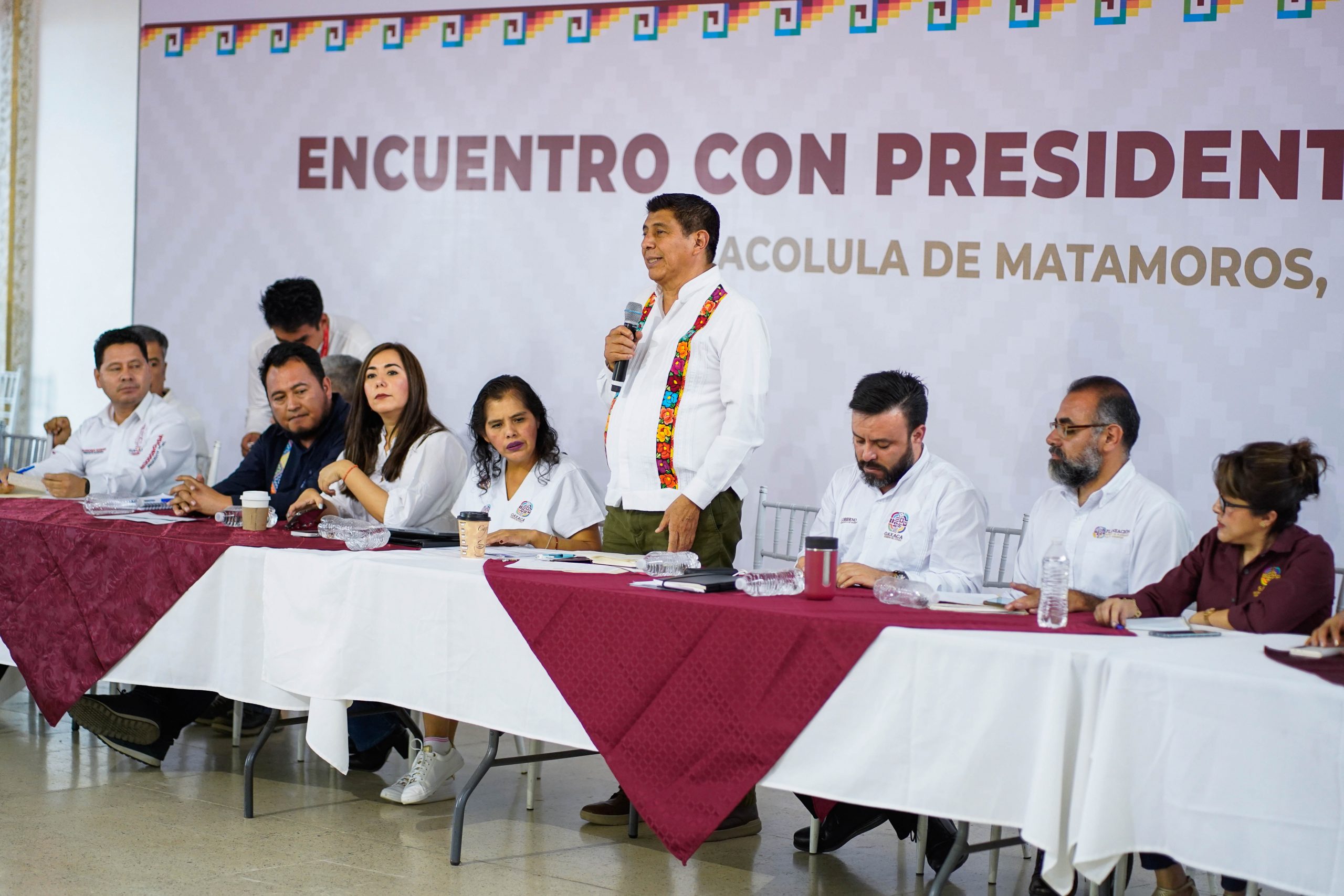 Luego de escuchar a las y los ediles que plantearon sus necesidades en materia de caminos, medicinas, clínicas, apoyos para el campo, agua potable, escuelas, temas de infraestructura y de seguridad, señaló que se realizarán 25 reuniones distritales y posteriormente visitará todos los municipios de Oaxaca para atender las necesidades de las autoridades y de las agencias.