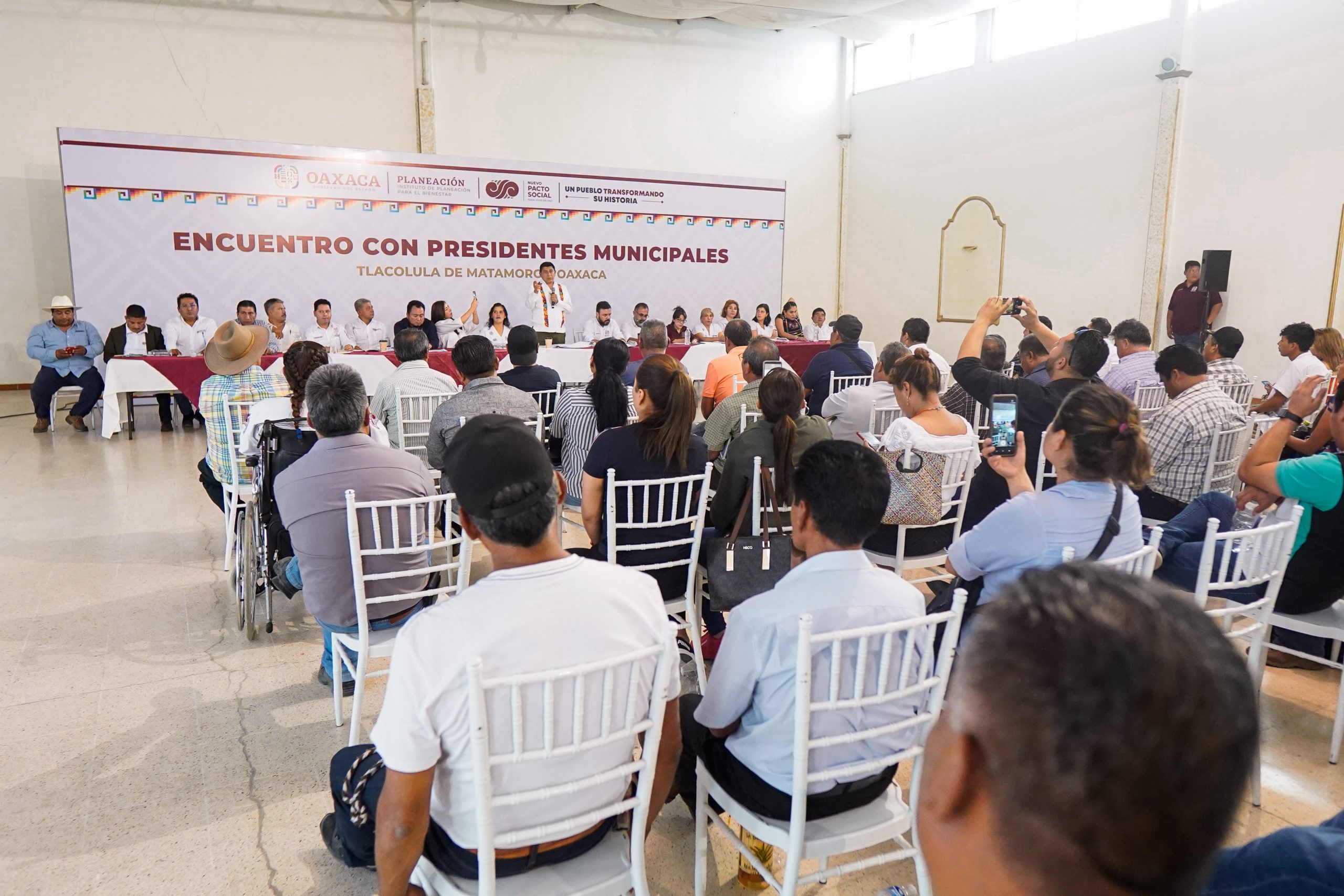 * El Mandatario encabezó el Encuentro con Presidentes Municipales del Distrito de Tlacolula para escuchar y atender las necesidades de 23 de 26 ediles que acudieron, y a tres más de otros distritos