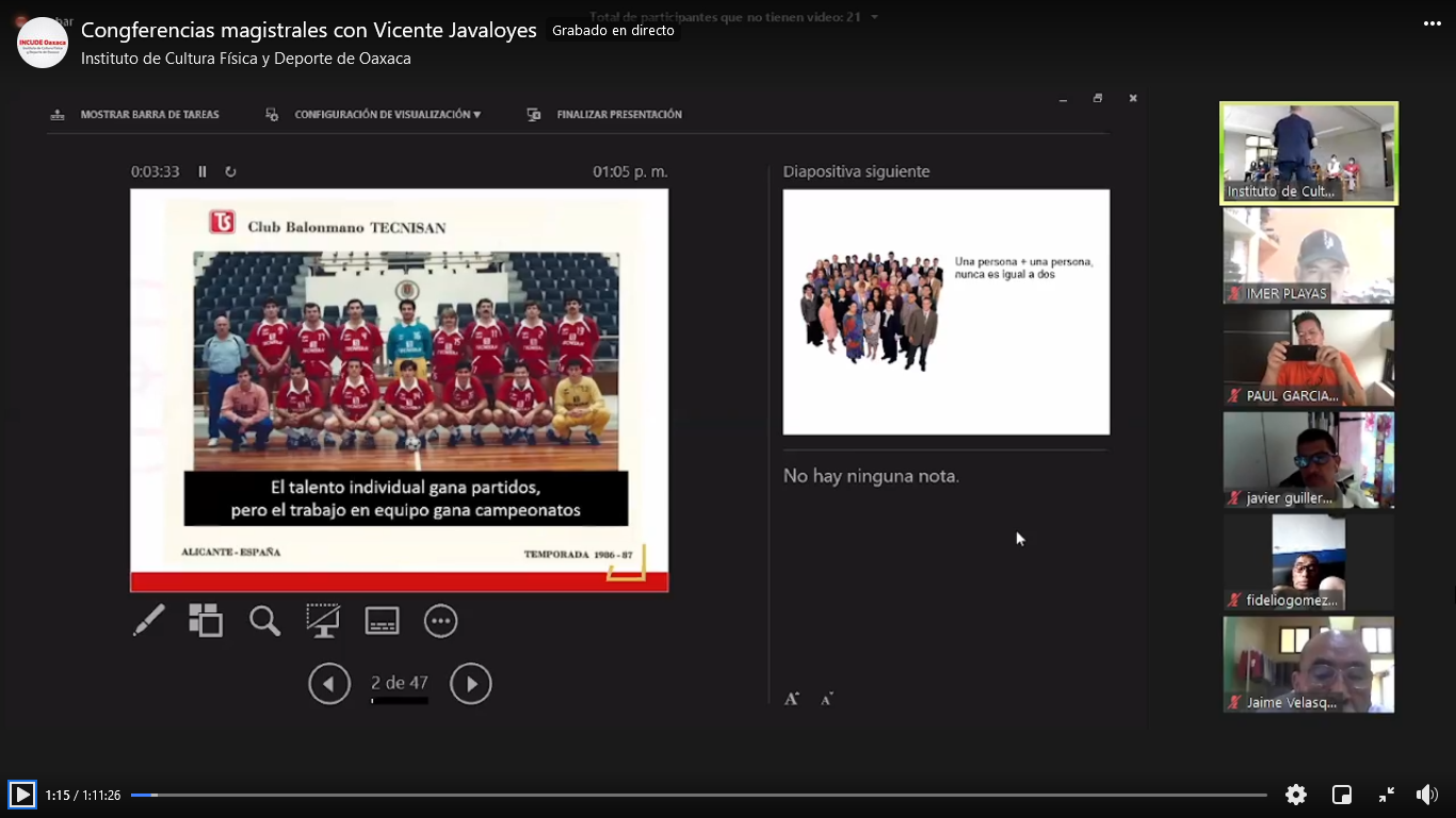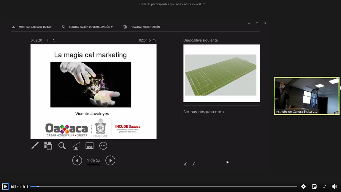 Oaxaca de Juárez, Oax. 14 de julio de 2021.- El Instituto de Cultura Física de Deporte de Oaxaca (Incude Oaxaca), marcó un precedente en la forma de realizar las capacitaciones en esta “nueva normalidad”, con la realización de las conferencias magistrales «Equipos de Alto Rendimiento» y “La Magia del Marketing Deportivo» que fueron realizadas de forma hibrida -presenciales y virtuales-.