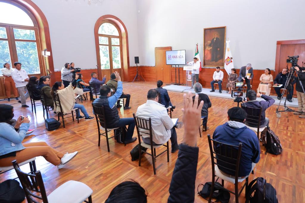 Entre otros temas, Salomón Jara Cruz anunció la visita del representante en México, de la Oficina de la Alto Comisionado de la ONU, Guillermo Fernández Maldonado, quien reafirmó al Gobierno de Oaxaca su compromiso y acompañamiento para garantizar el retorno de los desplazados de la Nación Triqui.