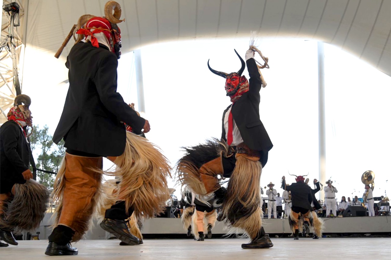 San Antonino Castillo Velasco, de los Valles Centrales, continuaron con la representación del “Segundo día de fandango y el Jarabe del Valle”, mientras los espectadores disfrutaban un rico y caliente atole de leche. Posteriormente, el escenario se llenó de colores y retumbó al presentarse la Danza de la Pluma por Cuilápam de Guerrero, con su baile que enmarca el mestizaje cultural que se dio tras la llegada de los españoles.