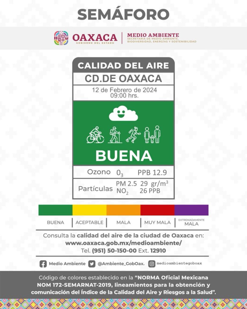 Por ello, ante los recientes siniestros registrados en la entidad, la dependencia informa que la realización de actividades al aire libre no implica riesgo alguno para la salud de la población; sin embargo, se solicita mantenerse informada de los reportes generados a través de las páginas oficiales: Secretaría de Medio Ambiente, Biodiversidad, Energías y Sostenibilidad en Facebook, @medioambientegoboax en Instagram y @Ambiente_GobOax en X.