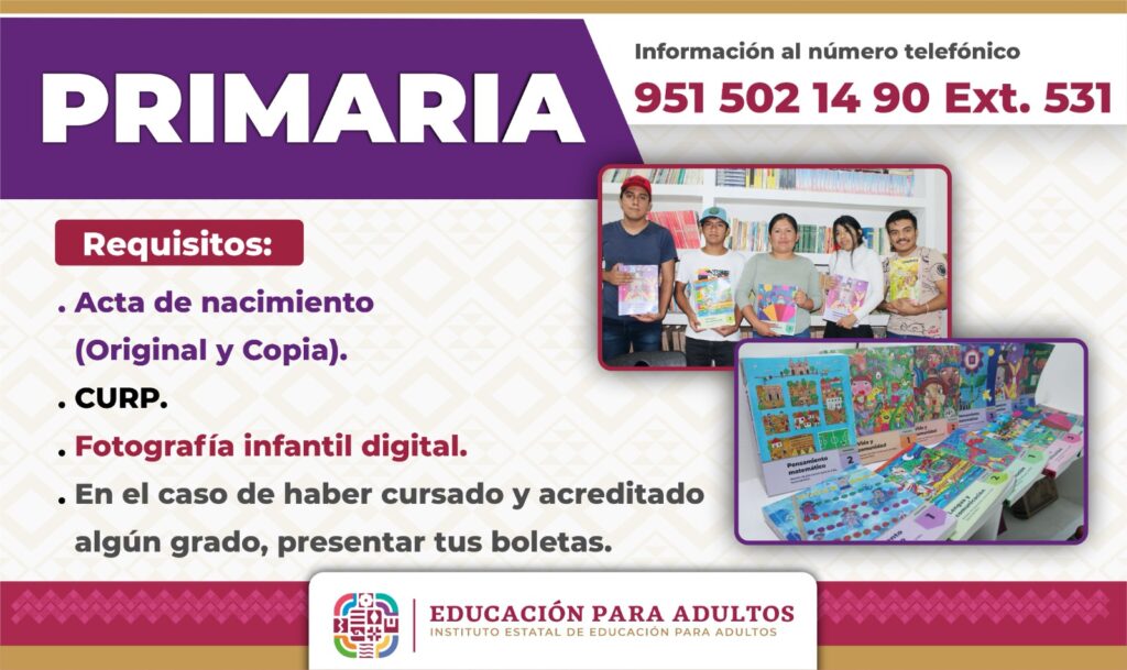 Si te interesa concluir la primaria, el INEA te ofrece la oportunidad de estudiar y concluir este nivel, así como obtener tu certificado con validez oficial.