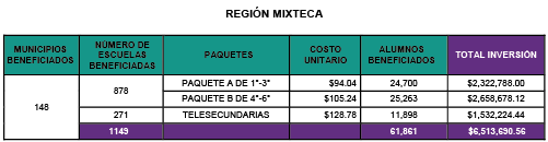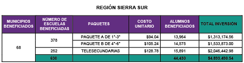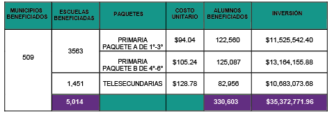 OBJETIVO: Garantizar la entrega de útiles escolares a escuelas beneficiadas de nivel primaria y telesecundaria con alto grado de marginación.