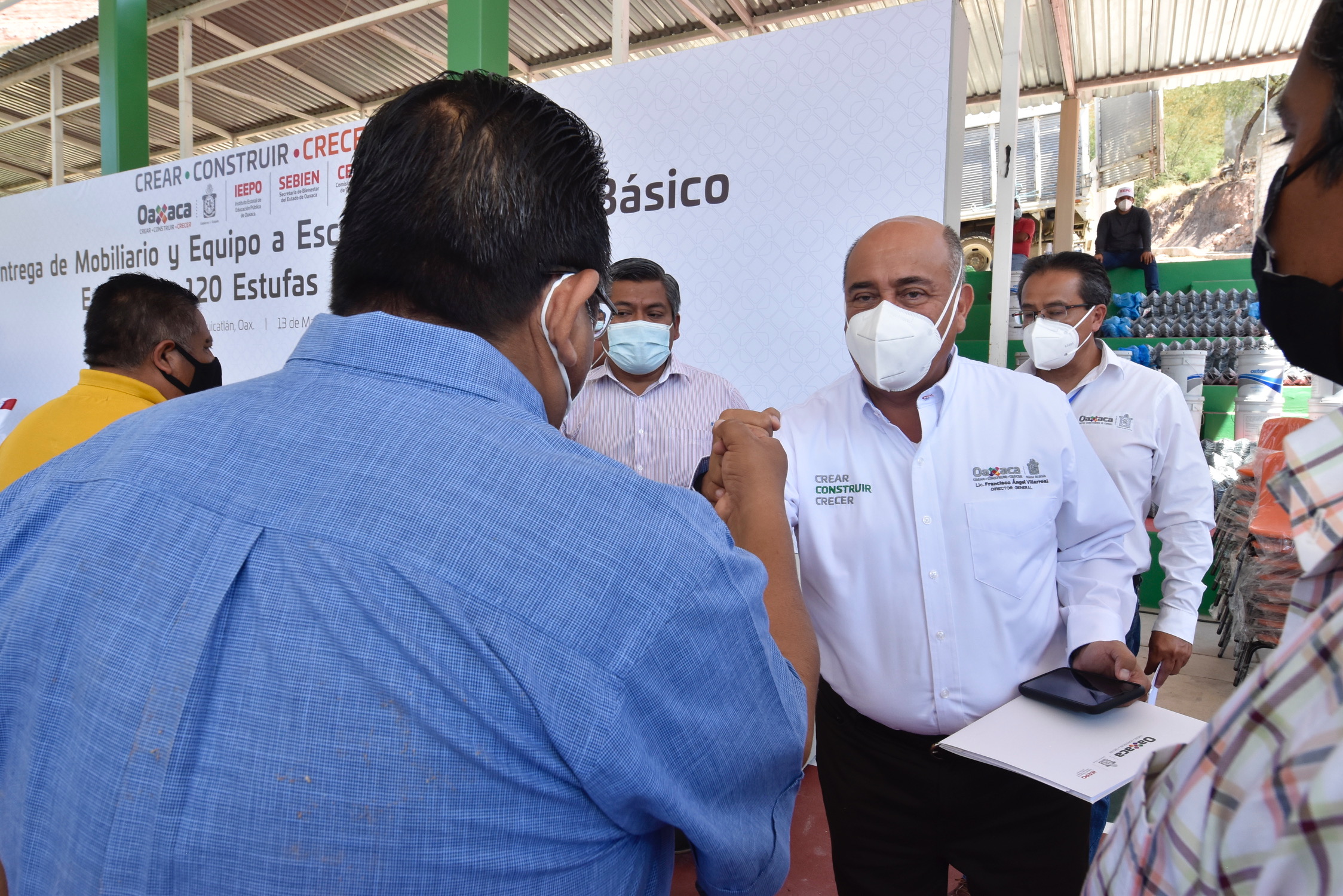 Por otra parte, en San Juan Bautista Cuicatlán, se  realizó la entrega de mobiliario y equipo para 26 escuelas de nivel básico de la región de la Cañada, en beneficio de mil 608 estudiantes y 80 docentes de nueve preescolares indígenas, cinco preescolares generales, dos primarias indígenas, seis primarias generales, una secundaria técnica y tres telesecundarias.