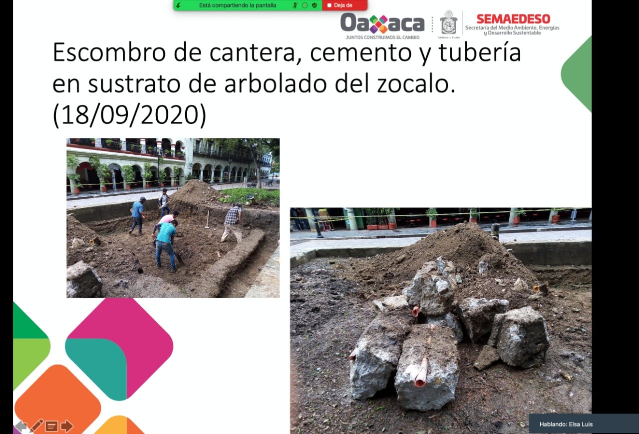 Oaxaca de Juárez, Oaxaca; 21 de septiembre de 2020.- El Gobierno del Estado de Oaxaca a través de la Secretaría del Medio Ambiente, Energías y Desarrollo Sustentable (Semaedeso) coordinó de manera virtual una reunión de trabajo emergente con la participación de expertos en arboricultura e instancias competentes con el objetivo de revisar la situación del arbolado urbano ubicado en zócalo de la ciudad de Oaxaca de Juárez.