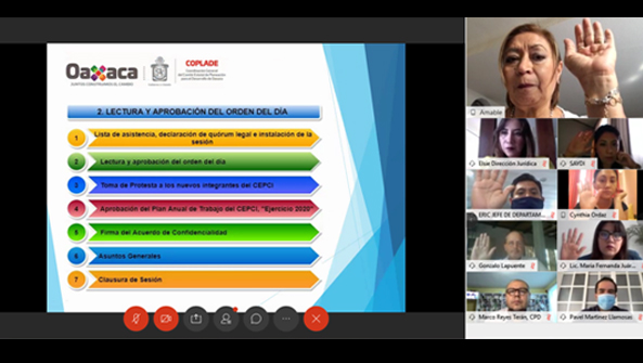 En esta Segunda Sesión Ordinaria del Comité, el ingeniero Toledo tomó protesta de sus nuevos integrantes, se aprobó el Plan de Trabajo 2020 y se firmó el acuerdo de confidencialidad.