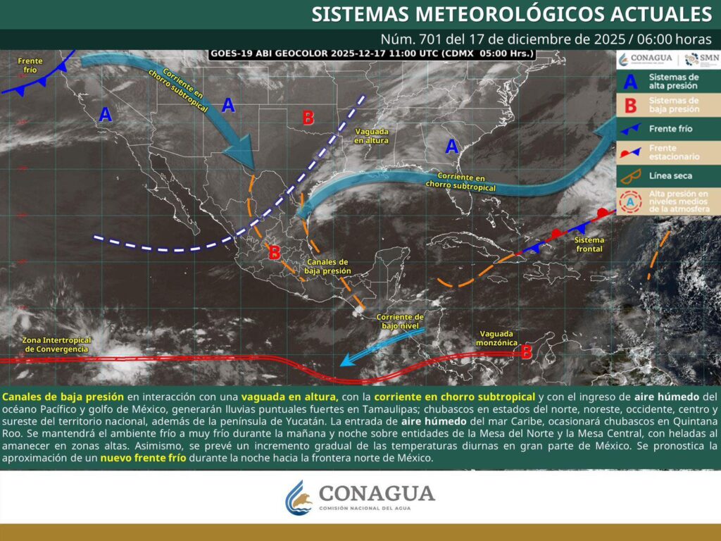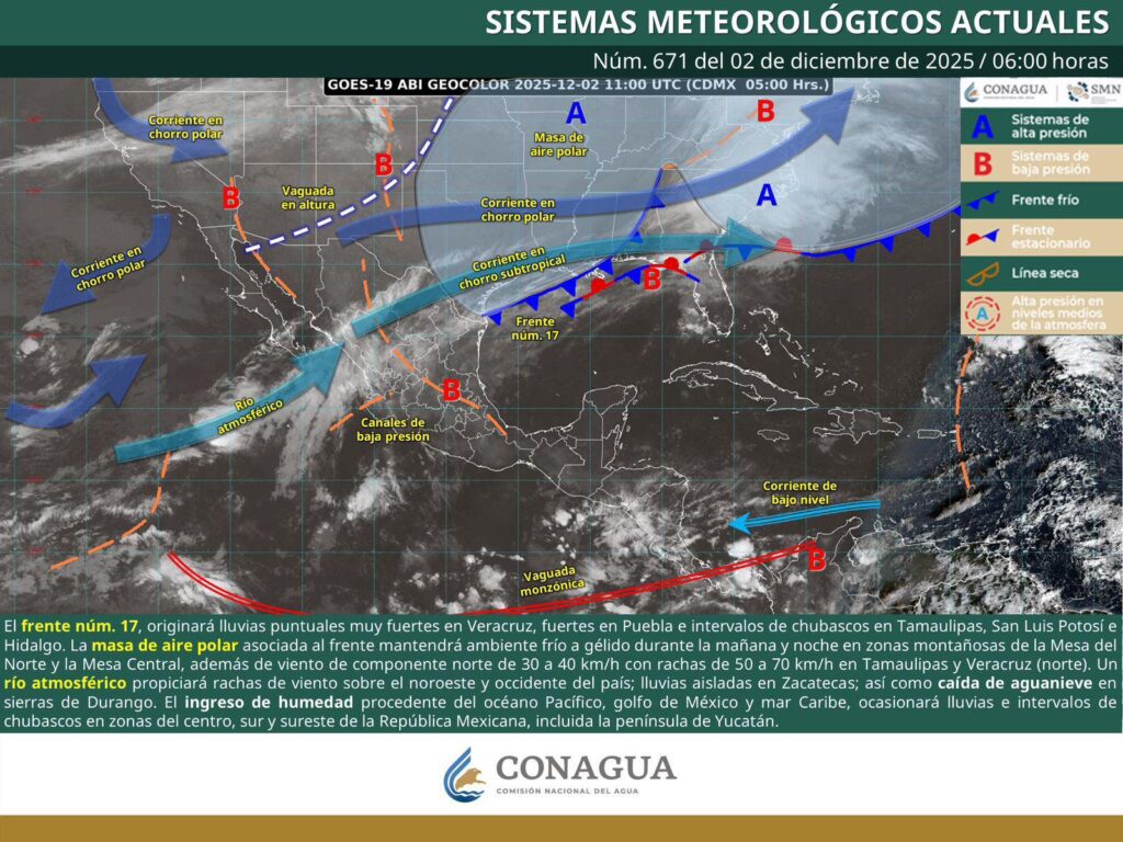 Por otra parte, un nuevo frente frío se aproxima a la frontera norte del país y se prevé un reforzamiento en los próximos días, lo que podría favorecer su desplazamiento hacia el sureste, con posibles efectos para el estado a partir del domingo.
