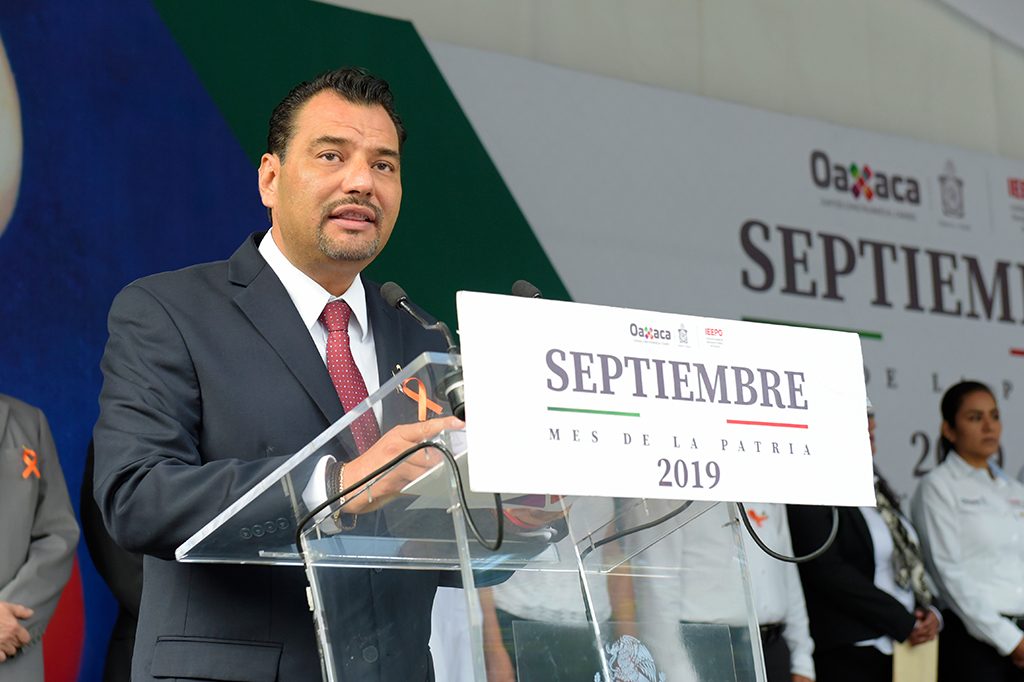 Al encabezar la ceremonia de izamiento de Bandera y acompañado de alumnos y alumnas de nivel básico así como de estudiantes de medicina y enfermería, reconoció su sentido del deber y compromiso cívico, al tiempo que aplaudió que sean la nueva generación de profesionales que velará por la salud de las y los oaxaqueños.