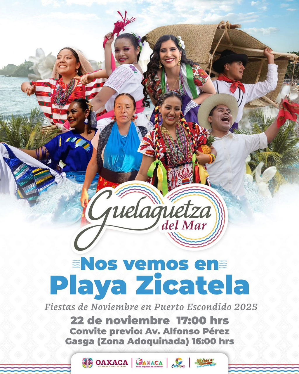 Este 22 de noviembre, en Zicatela se vivirá una tarde donde nuestras raíces se encuentran frente al mar, en un homenaje que celebra lo que nos hace únicos con la #GuelaguetzaDelMar2025