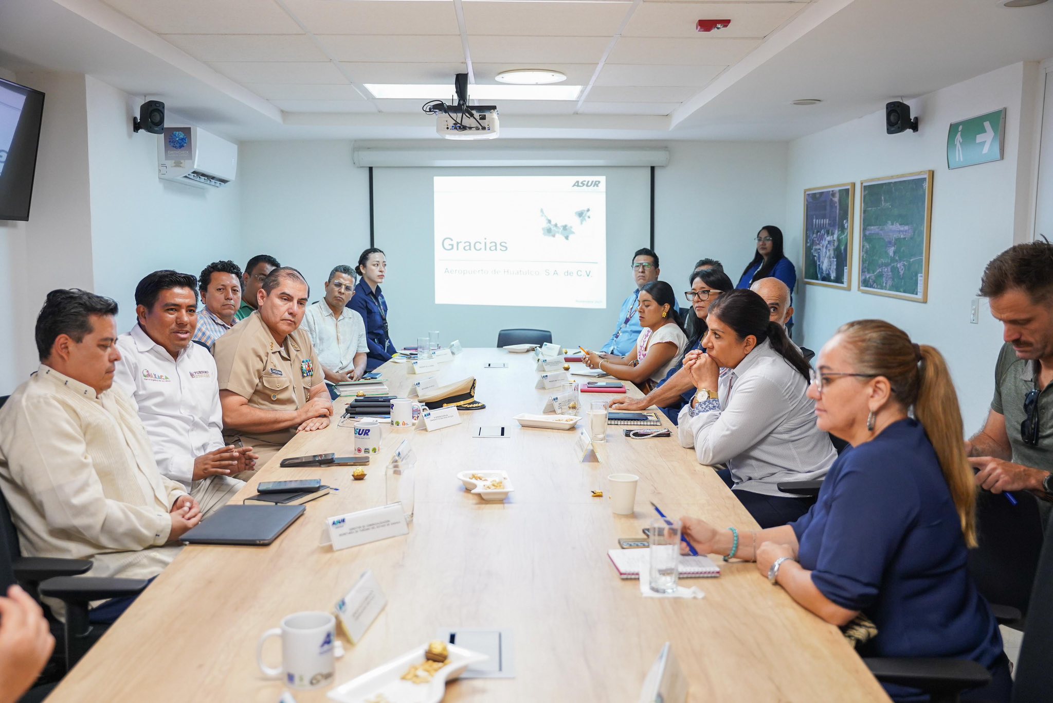 La reunión fue encabezada por la administradora del Aeropuerto Internacional de Huatulco, Margarita Arroyo Spamer, y contó con la participación del Subsecretario de Desarrollo Turístico, Pepe Hernández, en representación de la Secretaria de Turismo, Saymi Pineda Velasco.