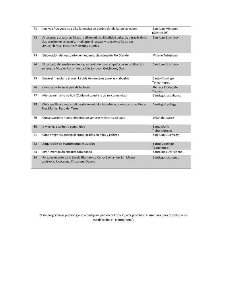 Oaxaca de Juárez, Oax. 28 de noviembre de 2019. La Secretaría de Cultura y Artes de Oaxaca a través de la Dirección de Conservación y Divulgación da a conocer la lista de proyectos e intervenciones aprobadas con financiamiento del Programa de Apoyo a las Culturas Municipales y Comunitarias (PACMyC) en su emisión 2019.