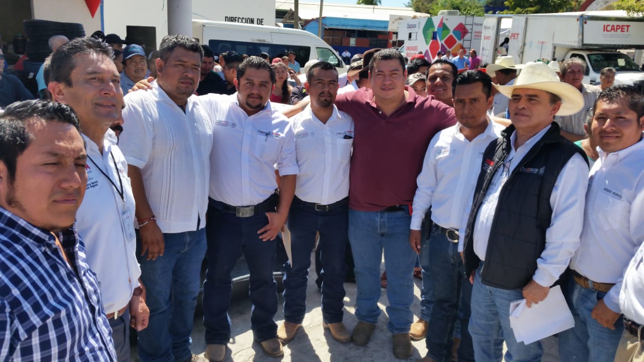 Zimatlán de Álvarez, Oax. 26 de febrero de 2019. “Somos un gobierno que trabaja por su gente y cumple”, afirmó el gobernador Alejandro Murat Hinojosa al entregar en esta localidad de los Valles Centrales, apoyos y equipo de cinco componentes y programas federales por un monto de 87.4 millones de pesos, para asegurar y fomentar la productividad en la entidad.