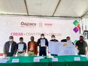 Tlalixtac de Cabrera, Oax. 29 de diciembre de 2020. La Secretaría General de Gobierno (Segego), a través de la Junta de Conciliación Agraria, junto con los presidentes municipales y de núcleos agrarios de San Miguel Quetzaltepec y San Lucas Camotlán, firmaron este día un convenio definitivo en la línea de colindancia que abarca más de cinco kilómetros, esto como parte de la conciliación en la indefinición de la zona de controversia entre ambas comunidades.