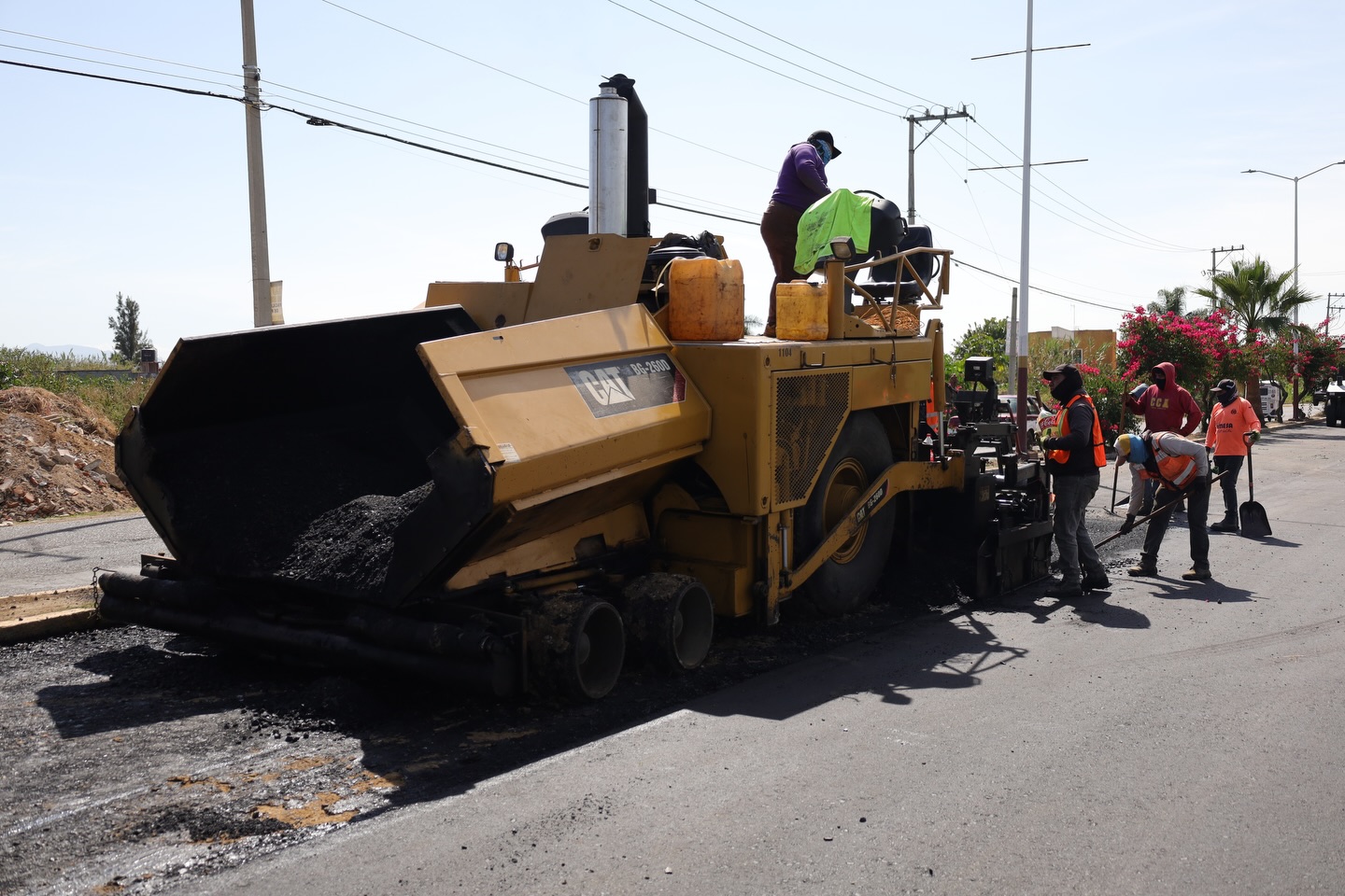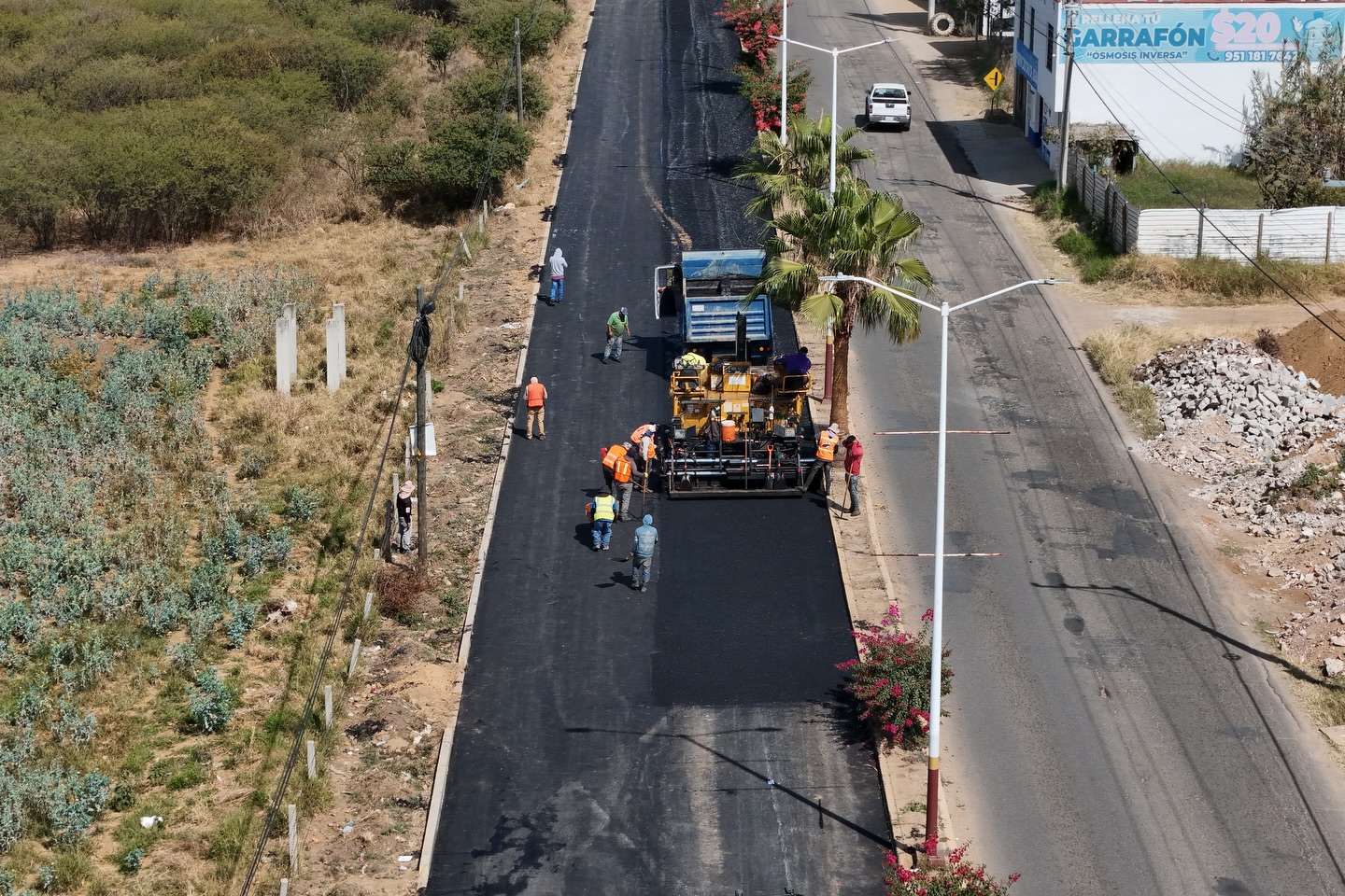 Continúan de manera sostenida los trabajos de tirado de carpeta asfáltica en Santa Cruz Xoxocotlán, en el tramo que conecta la Rotonda Benito Juárez con la Rotonda de las Personas Ilustres, atendiendo una de las zonas con mayor tránsito y demanda operativa.