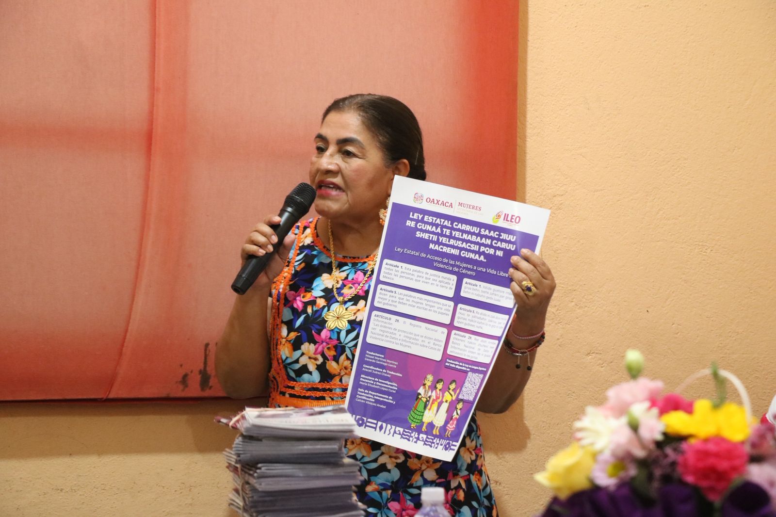 Como hablante de la lengua de la gente nube, la titular de la Secretaría de las Mujeres, Rogelia González Luis, presentó el Cartel “Ley Estatal de Acceso de las Mujeres a una Vida Libre de Violencia”, en la Biblioteca Andrés Henestrosa, de ese municipio.